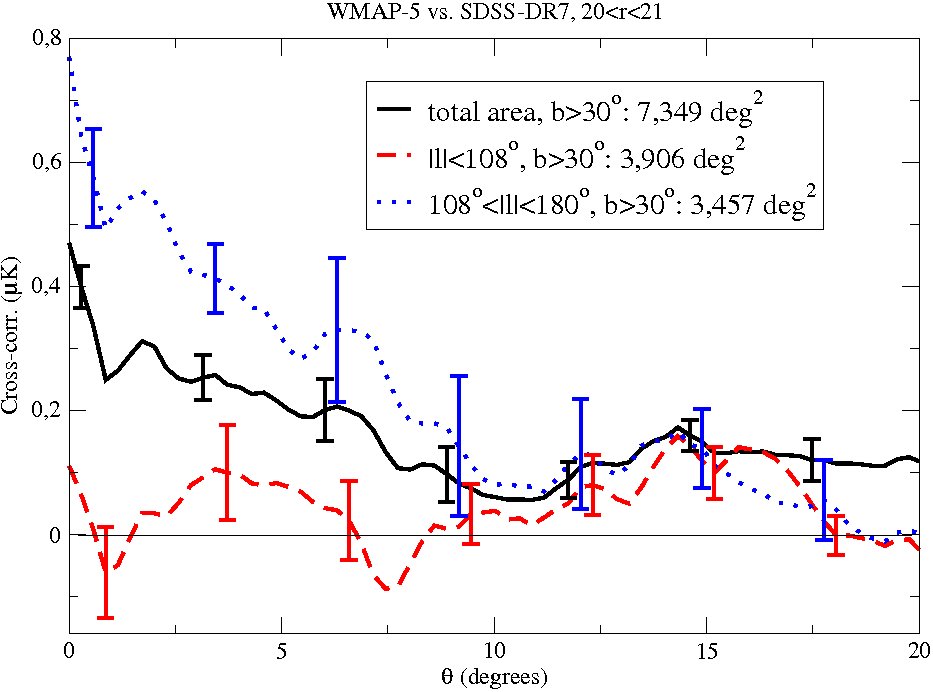 Methods: To measure the re-sampling errors, we use bootstrap and jack-knife techniques. For the field-to-field fluctuations, we use three methods: 1) evaluation of the dispersion in the cross-correlation when correlating separated regions of WMAP with the original region of SDSS; 2) use of mock Monte Carlo WMAP maps; 3) a new method (developed in this article), which measures the error as a function of the integral of the product of the self-correlations for each map.
