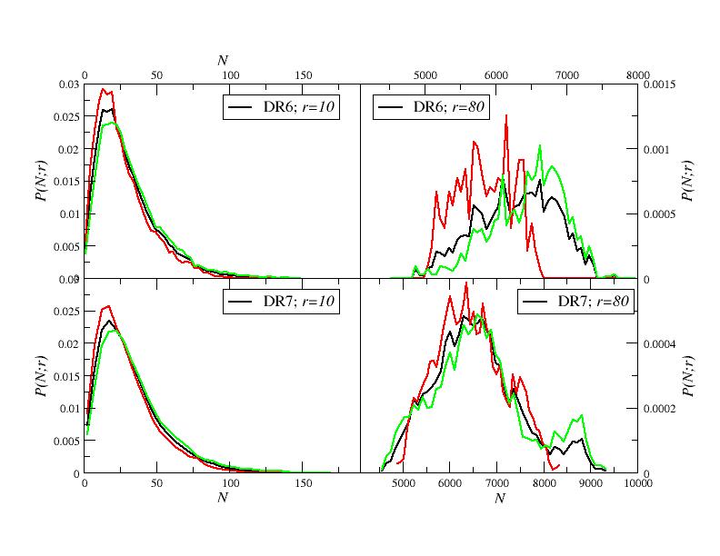 Cosmological density fields are assumed to be translational and rotational invariant, avoiding any special point or direction, thus satisfying the Copernican Principle. A spatially inhomogeneous matter distribution can be compatible with the Copernican Principle but not with the stronger version of it, the Cosmological Principle which requires the additional hypothesis of spatial homogeneity. We establish criteria for testing that a given density field, in a finite sample at low redshifts, is statistically and/or spatially homogeneous. The basic question to be considered is whether a distribution is, at different spatial scales, self-averaging. This can be achieved by studying the probability density function of conditional fluctuations. We find that galaxy structures in the SDSS samples, the largest currently available, are spatially inhomogeneous but statistically homogeneous and isotropic up to ~ 100 Mpc/h. Evidences for the breaking of self-averaging are found up to the largest scales probed by the SDSS data. The comparison between the results obtained in volumes of different size allows us to unambiguously conclude that the lack of elf-averaging is induced by finite-size effects due to long-range correlated fluctuations. We finally discuss the relevance of these results from the point of view of cosmological modeling.