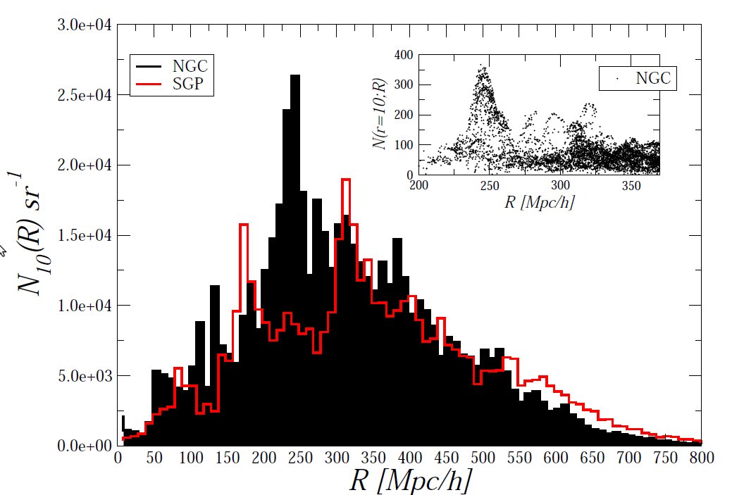 Standard models of galaxy formation predict that matter distribution is statistically homogeneous and isotropic and characterized by (i) spatial homogeneity for r<10 Mpc/h, (ii) small-amplitude structures of relatively limited size (i.e., r<100) Mpc/h and (iii) anti-correlations for r > r_c ~ 150 Mpc/h (i.e., no structures of size larger than r_c). Whether or not the observed galaxy distribution is interpreted to be compatible with these predictions depend on the a-priori assumptions encoded in the statistical methods employed to characterize the data and on the a-posteriori hypotheses made to interpret the results. We present strategies to test the most common assumptions and we find evidences that, in the available samples, galaxy distribution is spatially inhomogeneous for r<100 Mpc/h but statistically homogeneous and isotropic. We conclude that the observed inhomogeneities pose a fundamental challenge to the standard picture of cosmology but they also represent an important opportunity which may open new directions for many cosmological puzzles.