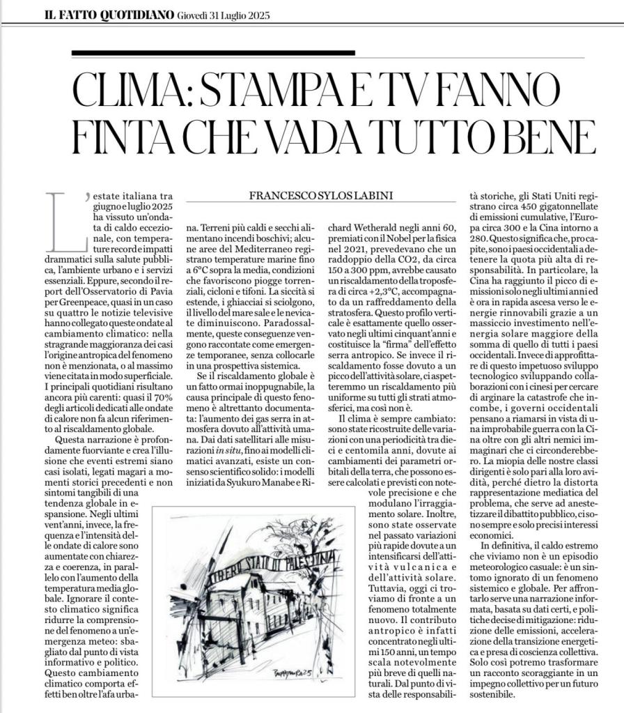 In definitiva, il caldo estremo che viviamo non è un episodio meteorologico casuale: è un sintomo ignorato di un fenomeno sistemico e globale. Per affrontarlo serve una narrazione informata, basata su dati certi, e politiche decise di mitigazione: riduzione delle emissioni, accelerazione della transizione energetica e presa di coscienza collettiva. Solo così potremo trasformare un racconto scoraggiante in un impegno collettivo per un futuro sostenibile.