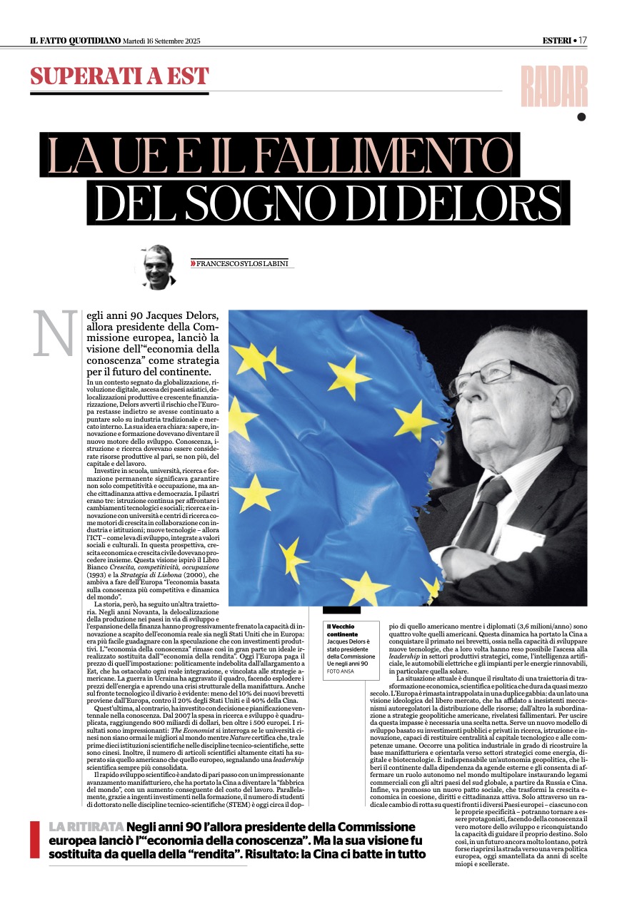 Only through such a radical change of course can European countries—each with their own specificities—once again become key players, making knowledge the true engine of development and reclaiming the ability to shape their own destiny. Only then, perhaps in a still distant future, might the path reopen toward a genuine European political project, dismantled by years of shortsighted and reckless choices.