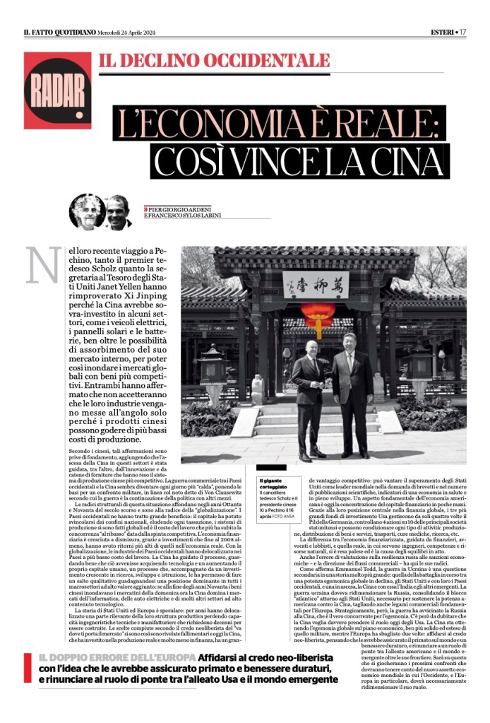 Caravani M., Sylos Labini F. (2025), “La Cina e la sfida al primato scientifico e tecnologico