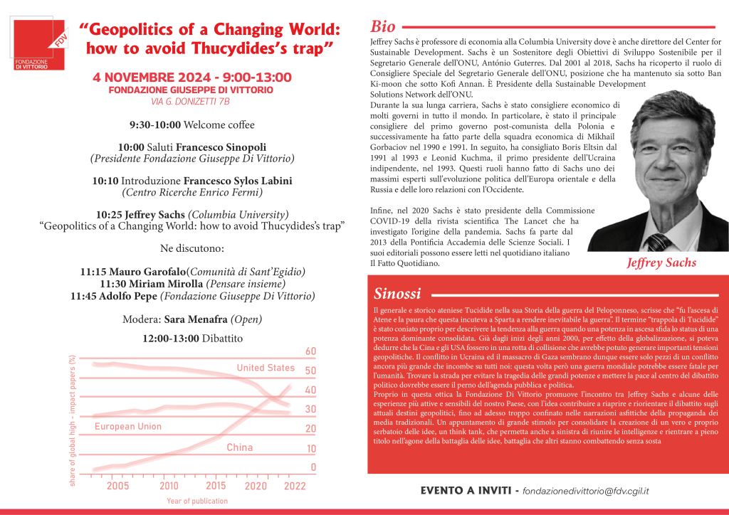 Introduction to Jeffrey Sachs’ lecture at the Vittorio Foundation: “Geopolitics of a changing world” published by Il Ponte